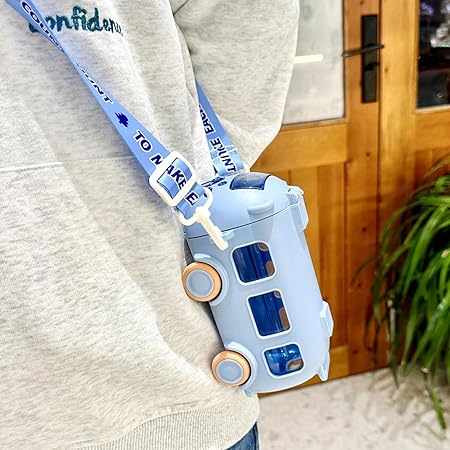 Car Bus Straw Water Cup 500ml Portable Detachable Bus Water Bottle with Shoulder Strap Leak-Proof Kids Drink Cup Cartoon Water Jug Toy Locking Flip Lid Water Kettle(Multicolor, Pack of 1)